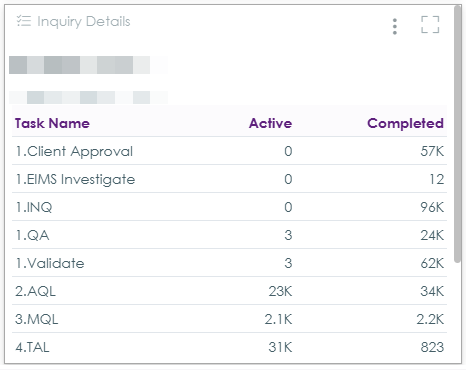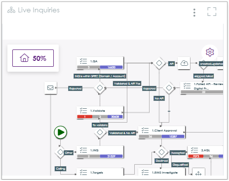 This tile shows an aggregate of processes active and completed for each Task in the Live Inquiries process.
